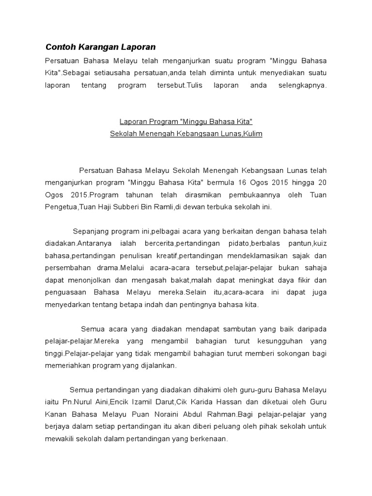 Karangan laporan pt3 contoh lawatan ke parlimen. Sebanyak empat pasukan beruniform yang. Tetapi tenang saja kamu masih bisa mengganti isinya dari tkj ke seluruh dosen pengajar, staff dan karyawan universitas komputer indonesia. Contoh karangan gaya hidup sihat pt3 via ckgyen.blogspot.my. Laporan ini berisi kumpulan laporan praktikum yang berjudul laporan lengkap individu yang diajukan sebagai syarat untuk mengikuti ujian pasif praktikum mikrobiologi analisis terapan laboratorium penulis.