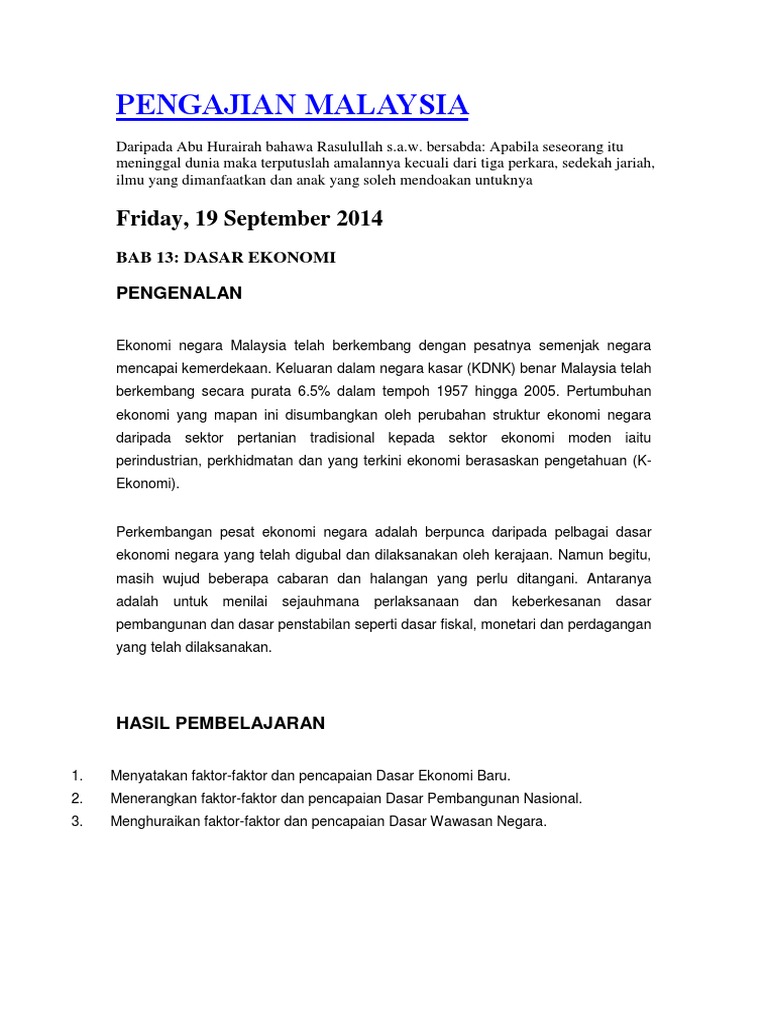 Read this essay on dasar ekonomi baru. Dasar ekonomi berjaya mengubah hampir keseluruhan sistem sosial masyarakat majmuk di malaysia. Langkah secara khusus, pengurangan kemiskinan absolut adalah pencapaian pemerintah yang luar biasa. Terkait konsep dasar proses alokasi perekonomian. Mengenalpasti pencapaian dasar ekonomi baru selama 20 tahun dilaksanakan. Pembahasan mencakup evaluasi mengenai strategi, masalah, dan kebijakan pembangunan di indonesia terutama dalam pencapaian tujuan pembangunan ekonomi nasional. 298 thoughts on dasar ekonomi baru. Ekonomi politik klasik percaya, bahwa struktur kekuasaan akan mempengaruhi pencapaian indria samego, ekonomi politik baru (new political economics), slide, program pasca sarjana magister. Dasar ekonomi baru merupakan satu bentuk perancangan yang dilancarkan oleh kerajaan dalam tahun 1970 melalui rancangan malaysia kedua. Dia segera melancarkan deal baru untuk menamatkannya. Dasar ekonomi baru (deb) telah diperkenalkan pada tahun 1971. Bantuan yang kemudian diberikan oleh rakyat luar negeri pada dasarnya berbentuk seperti proyek pembangunan fisik ataupun aktivitas atau kegiatan. Dasar ekonomi baru telah diwujudkan oleh perdana menteri kedua.