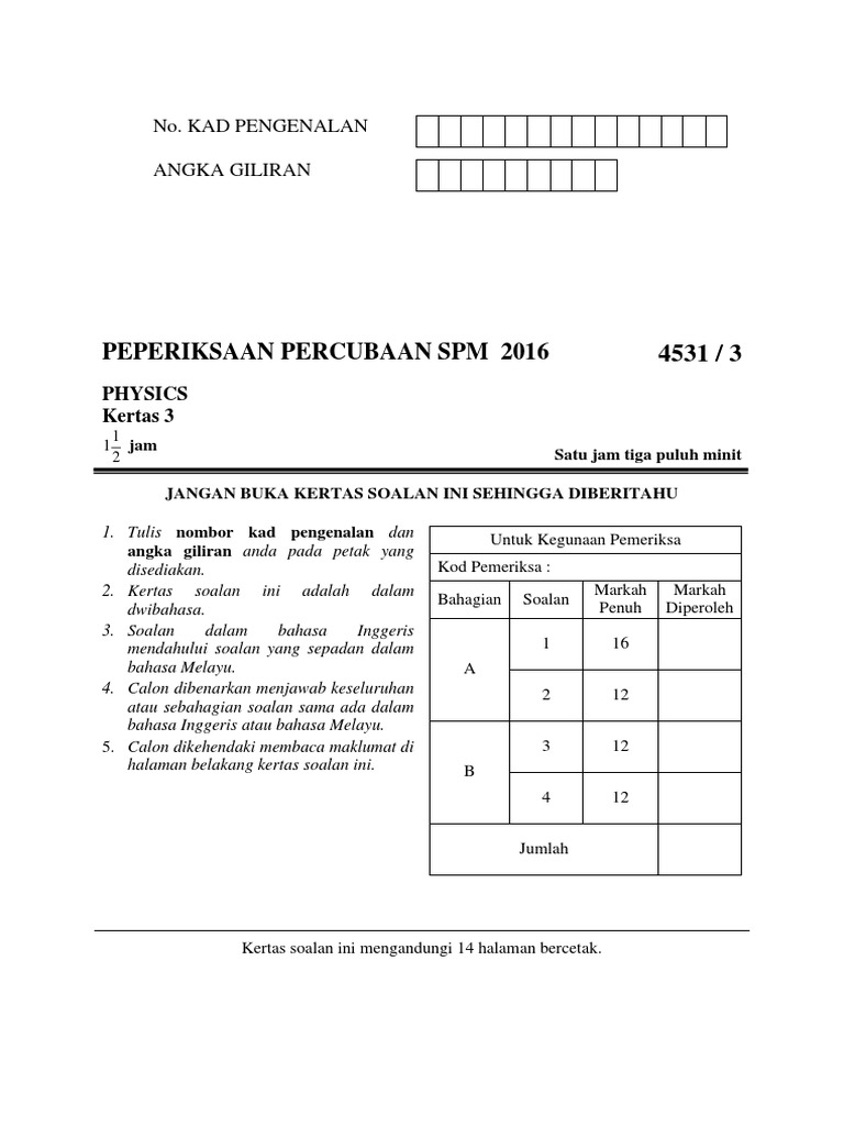 Kertas soalan peperiksaan percubaan fizik spm 2016 + skema jawapan (trial papers). Koleksi soalan percubaan spm 2017 dan spm 2016 + skema jawapan. Matematik tambahan (additional mathematics) spm. Soalan percubaan fizik spm 2016 selangor + jawapan (3). Oleh itu, semua jawapan yang betul anda akan dberi ganjaran iak.